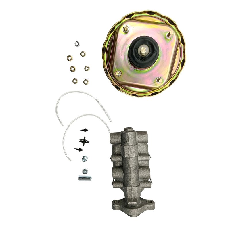 - Zinc 7" Dual DiaphragmPower Brake Booster and a new Cast Iron Dual Bail Top Master Cylinderfor universal applications.