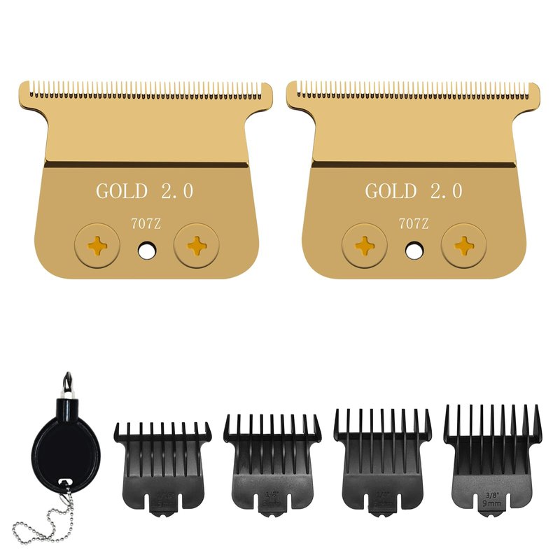 707Z Replacement Blade compatible with BaBylissPRO FX787 & FX726 Trimmers,2 Pack DLC Replacement Blades with 4 Guards Set Compatible with BaByliss Trimmer Blades,Gold