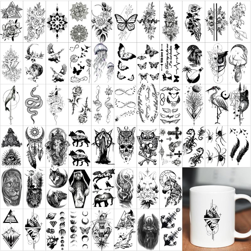 Features: Size:7.5*3.8 inch (190mm*96mm) (L*W) 12 sheets4.1*2.4 inch (10.5*6cm) (L*W) 60 sheets High Quality: Our temporary Tattoos can last 2-7 days according to the position you stick it Easy to Remove: 10-20 seconds with just water and easily removed by rubbing alcohol, body oil, olive oil. How To Use: 1. Cut out tattoo of choice and remove the transparent film. 2. Place tattoo face down on skin. 3. Wet the tattoo thoroughly with a sponge or towel. 4. After 20-30 seconds, gently remove the back paper. 5. Allow tattoo to dry. Warning 1. Do not apply to sensitive skin, near eyes or if allergic to adhesive 2. Not recommended for children under 3 years old