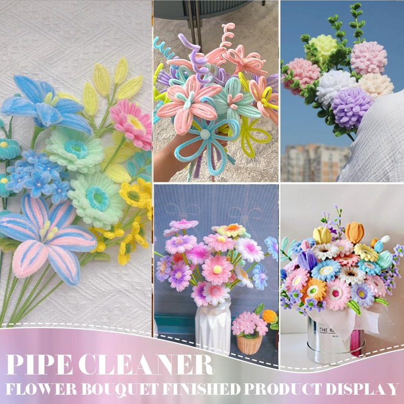 720 Pieces Pipe Cleaners Flower Set, 700 Flower Corlor Chenille Stems Whith 20 Pcs Flower Stems, Craft Supplies Bulk for DIY Art and Craft Projects Creative Gift Wrapping Party Decorations(Flower)