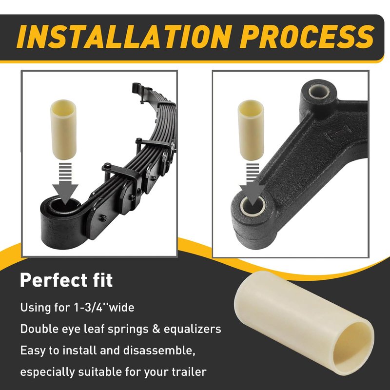 - What You Will Get: Set includes 8 pieces of Trailer Leaf Spring Nylon Bushings. Specially fits slipper trailer leaf springs or equalizers.