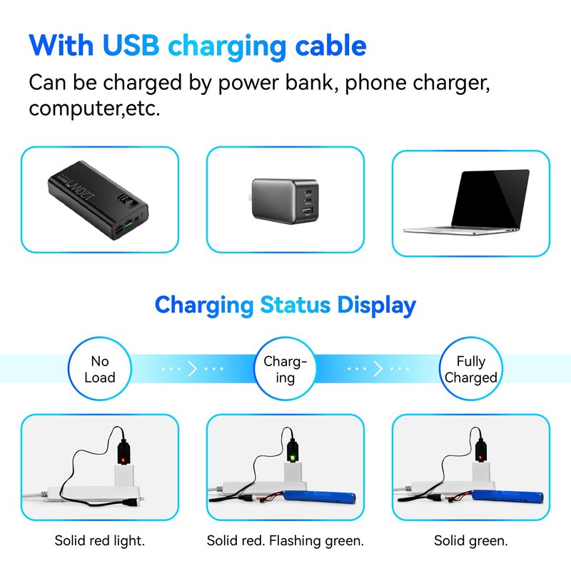 - 【Portable Charging Kit】 Unlike most rechargeable batteries, our kit features a double-protected battery to increase lifespan, reduce aging, and prevent electrical leakage or export during charging.