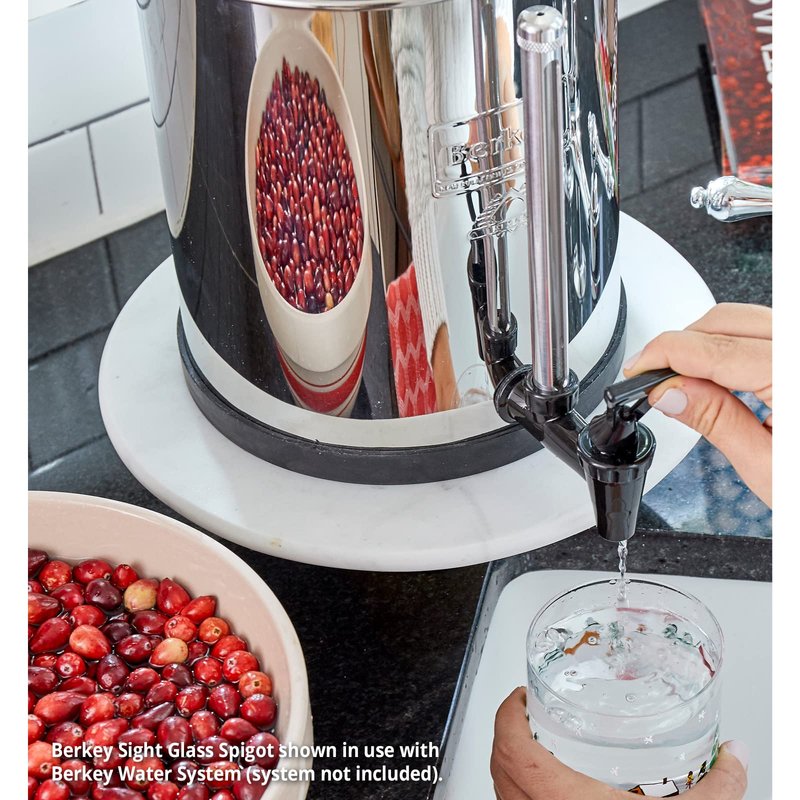 - The Berkey Sight Glass Spigot also shows how much water you can safely add without overfilling your system, preventing unwanted spills.