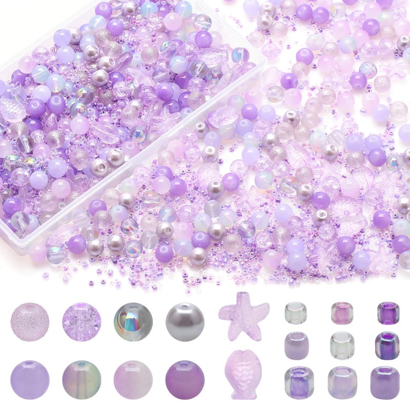 - ✔Unique Beads Assortment: This lavender glass beads kit feature 8 types total 240pcs round beads, 10pcs fish shape beads, 10pcs starfish beads, and 18 gram mixed seed beads, providing a diverse selection for customers to create various jewelry or craft projects. The fish shape beads and starfish beads in kits add a unique and eye-catching element to jewelry or crafts, allowing to create stunning and imaginative designs.