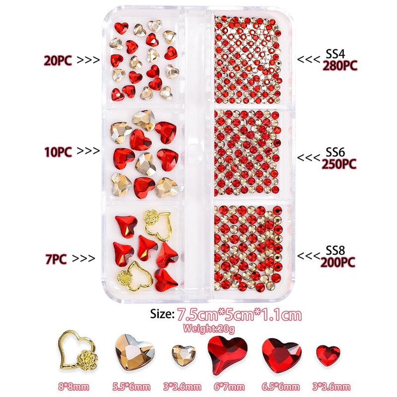 - 【1 Box 6 Grids K9 Glass High Quality Cute Small Red Nail Rhinestones】Total 767pcs sparkling Crystal Red rhinestones nail crystals, 6 shapes siam red gem rhinestones, small style to meet different design needs. Each shape assorted in separate grids, makes it easier to achieve different designs of nail art, which add sparkle and glamour to your crafts. Nail gems and rhinestones for nails are not self-adhesive, you need to apply glue to stick them (glue is not included in the package).