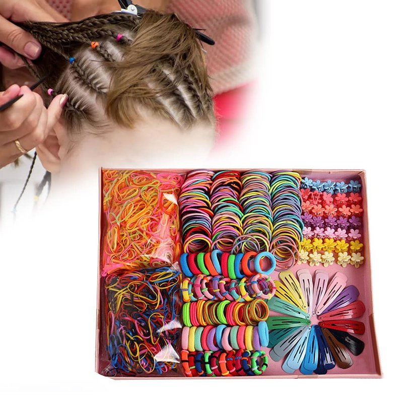 4. Set: The package includes a total of 780 pieces, including non-slip printed metal hair clips and elastic hairband ponytails, which are enough for your daily use.