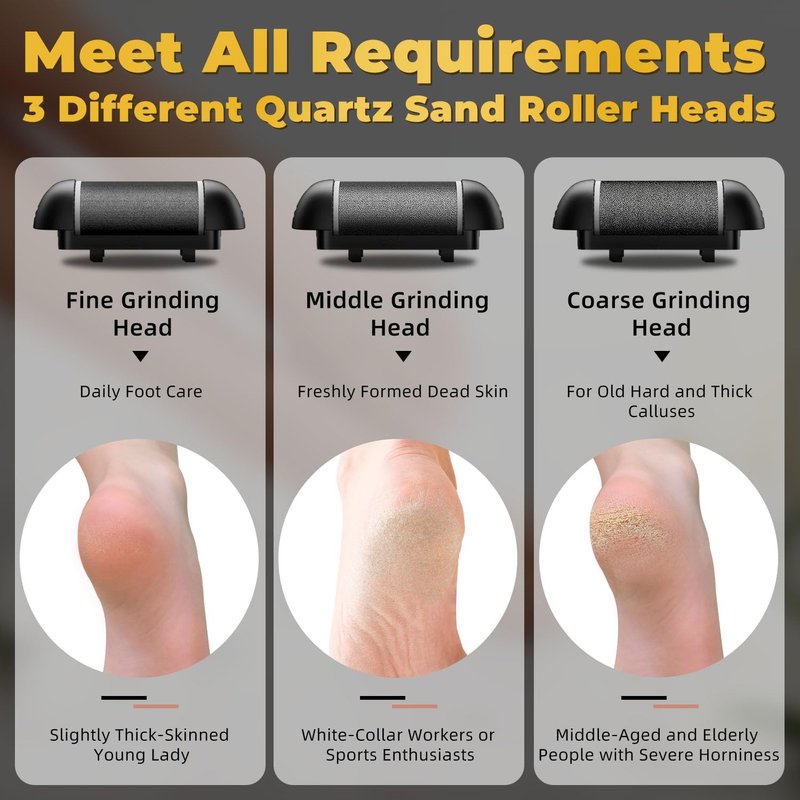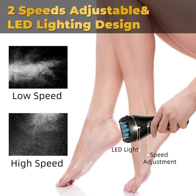 - 3 Replace Heads & 2 Adjustable Speeds: The electric foot callus remover with easy roller head changes and speed adjustments. Rough roller head for remover stubborn horny dead skin, medium roller head for remover rough dead skin and fine roller for daily foot care. 2 adjustable speeds (1700-2000 RPM) for customized exfoliation.