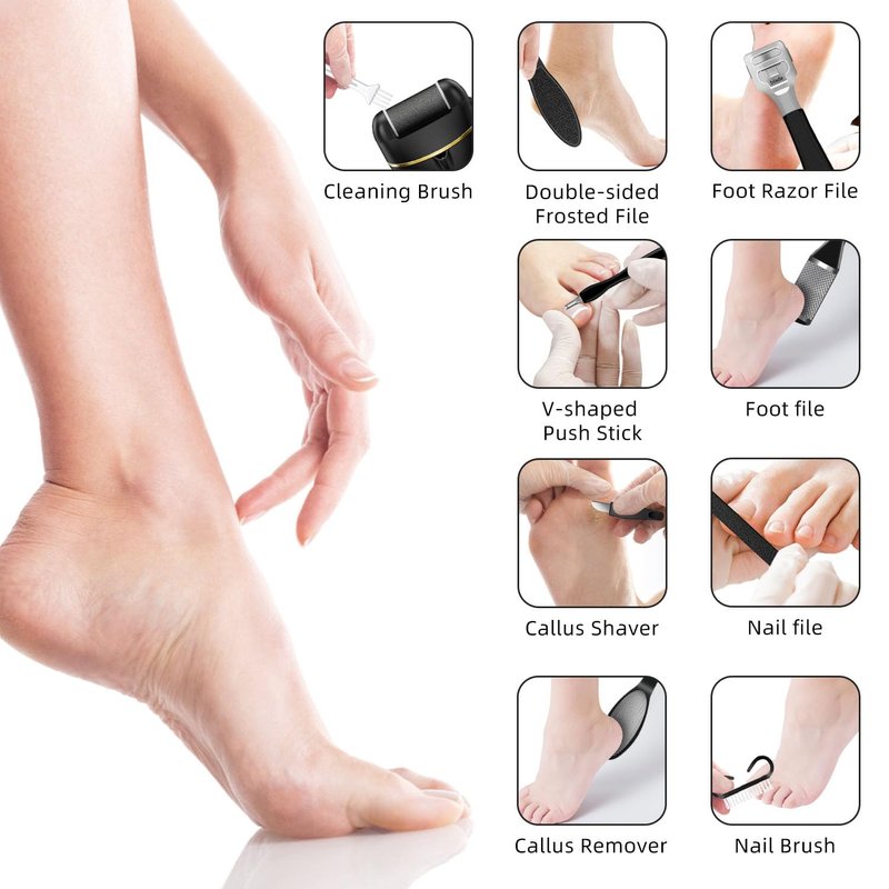 - 16 in 1 pedicure kit: Included cuticle remover, fine file, 2-sided foot file, cuticle fork, callus scraper, sandpaper file etc. The 16 in 1 foot care kit is complete that can meet your different needs without the need to buy additional accessories.