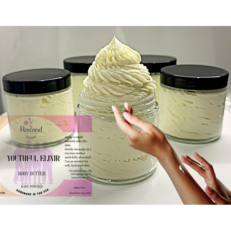 7oz Handmade Luxurious Whipped Body butter with Shea & Cocoa butter based with natural oils - non greasy, moisturizing (White (Baby Powder))
