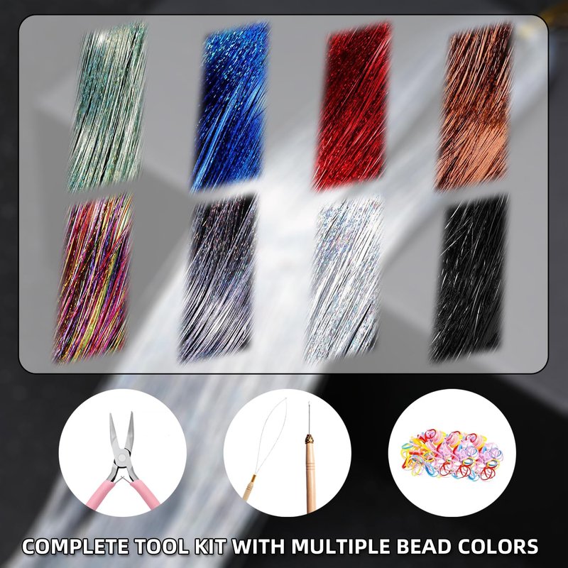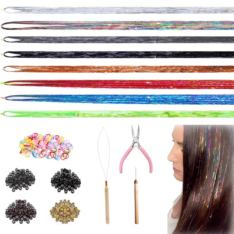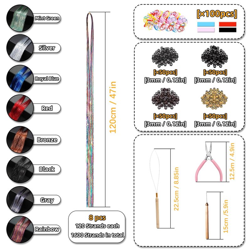 Hair Tinsel Guantity: 8 pcs, 120 Strands each, 1600 Strands in total
