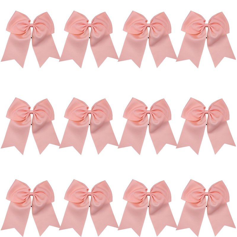 8 Inch Cheerleader Bows Ponytail Holder Solid Color Cheerleading Bows Hair Tie (Peach)