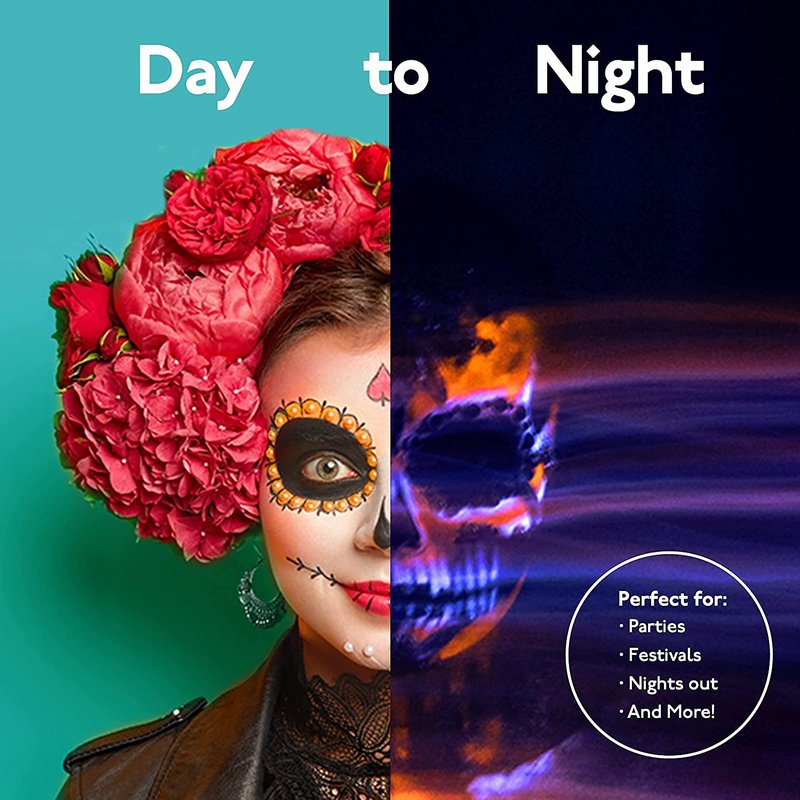 - PERFECT For RAVES and MASQUERADE, CLUB PARTIES - Express yourself at any large club, rave or halloween and anywhere with UV face paint. From sports fans to Halloween costumes, this disposable face paint can meet your needs. Very suitable for birthday parties, cosplay, themed parties, stage performances, festivals, carnivals, temporary tattoos and more.