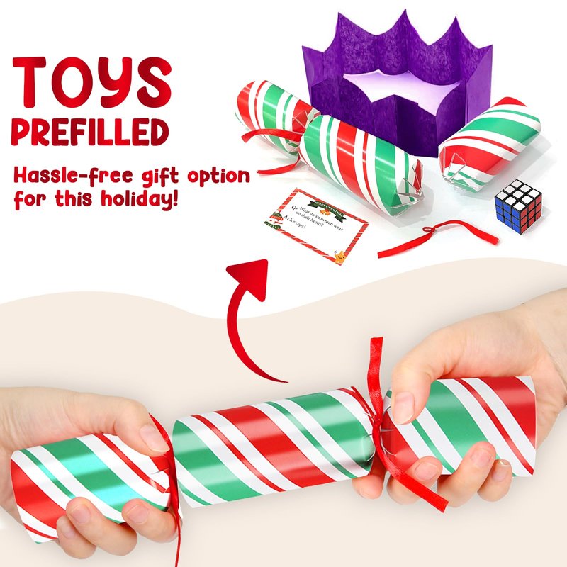 [ Christmas Super Value ] Christmas party table favors set includes 8 packs of no-snaps party favors. Each party favor contains a party paper hat, a Christmas joke paper and a random gift inside