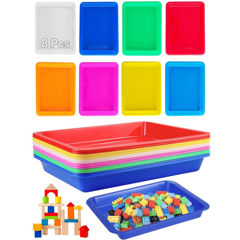 - 【8 PACK COLORFUL TRAYS】you will receive 8pcs plastic trays for classroom (contains 8 colors, White,Dark Blue,Green,Yellow,Red,Rose red,Orange,Sky Blue), kids will like these art trays with a bright look; Use them for their favorite arts and crafts, loose toys and more.