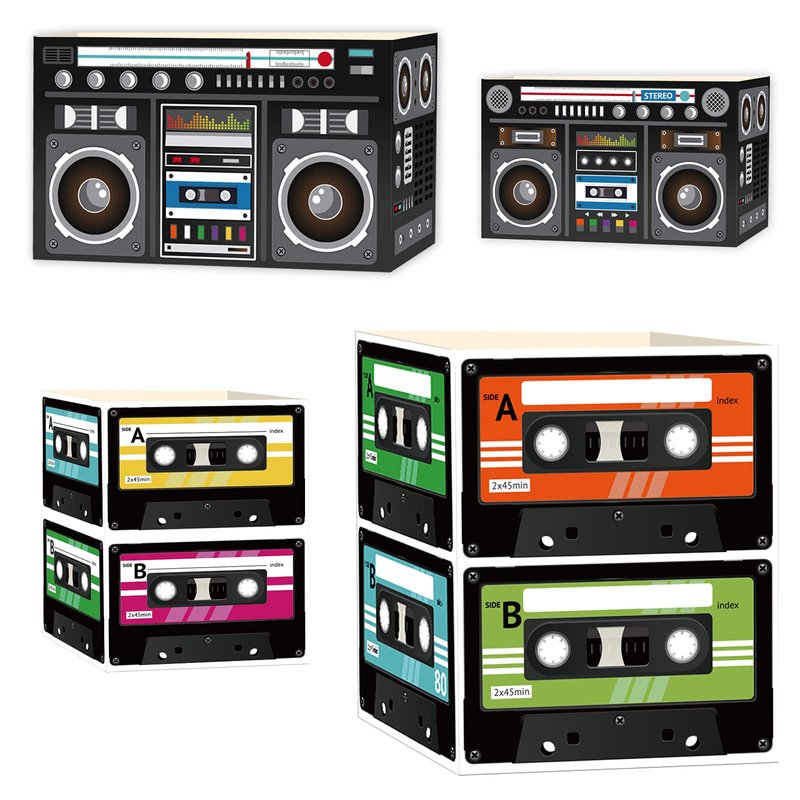 - 【Package include】You will get 8 pieces 80’s party table centerpieces boxes for each set, including 4 radio paper box in 2 designs and 4 cassette tape in 2 designs. The cassette tape box measures about 20x15x15cm/7.8’’x6’’x6’’ and 15x10x10cm/6’’x4’’x4’’; The radio box measures about 12x20x10cm/4.7’’x7.8’’x4’’ and 9x15x7.5cm/3.5’’x4.3’’x3’’.