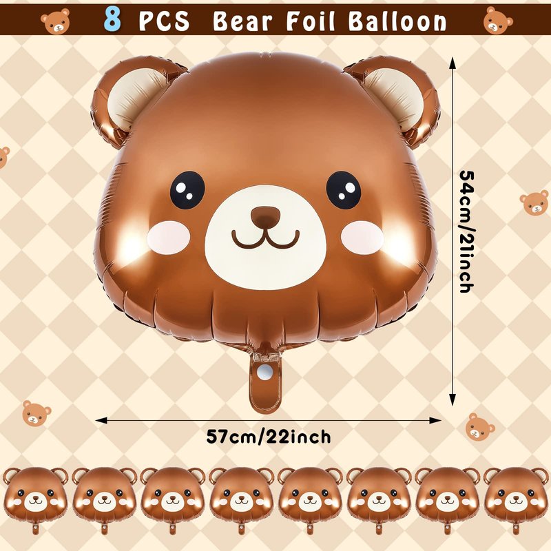 8 Pcs Bear Balloons 21x22 Inch Bear Shaped Animal Balloons Bear Baby Shower Decorations Helium Brown Bear Foil Balloons Bear Head Balloon for Jungle Woodland Animal Farm Safari Theme Party Decoration