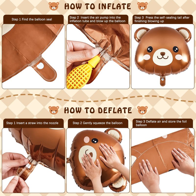 - Simple to Use: the bear balloons baby shower can be filled with air or helium with a pump (not included), then you can flatten the mouth of the balloon after it is inflated, and it will seal itself thanks to the adhesive, easy and convenient to apply