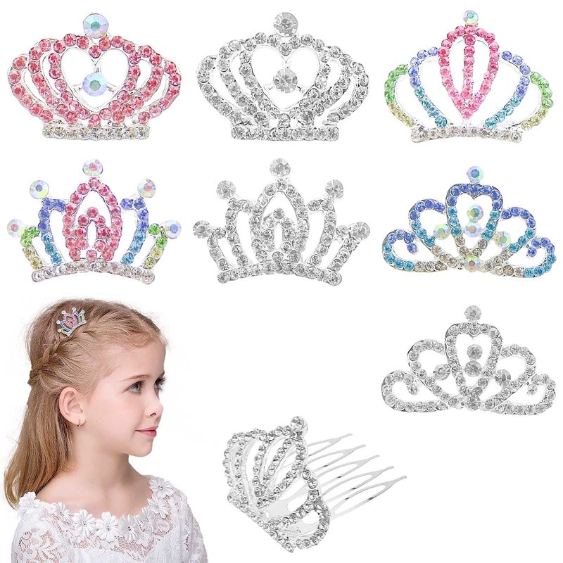 8 PCS Mini Crystal Rhinestone Princess Crown Hair Comb, Shiny Rhinestone Tiara for Girls Princess Birthday Party Supplies Hair Dectoration