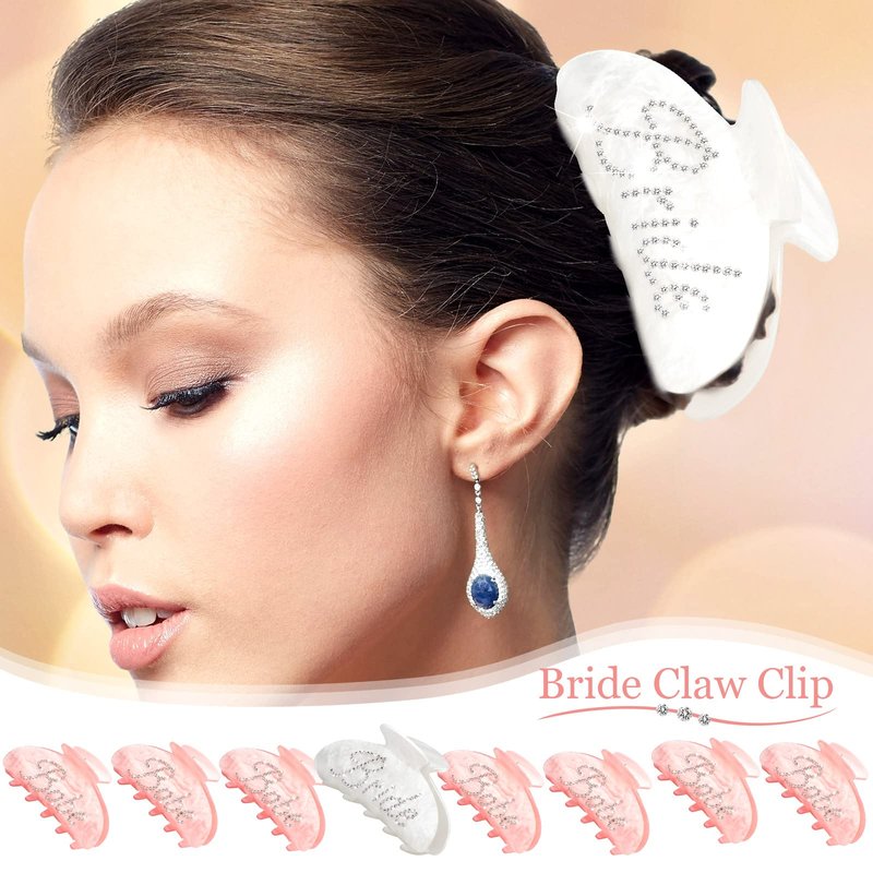 - What You Get: we will provide you with 8 pieces bride hair claws, 7 pieces are in pink and 1 piece is in white, decorated with rhinestones to spell words, delicate and attractive, nice choices for girls