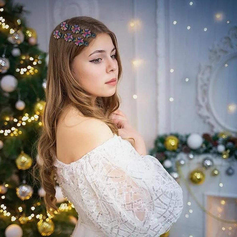 Christmas Snowflake Sparkling Crystal Stone Braided Hair Clips, Short Women's Braided Duckbill Hair Clips for Women Hair Accessories