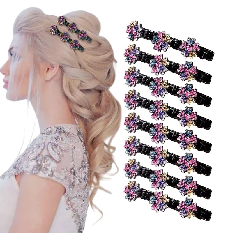 8 Pcs Sparkling Crystal Stone Braided Hair Clips, Short Women's Braided Duckbill Hair Clips for Women Hair Accessories (Rainbow)