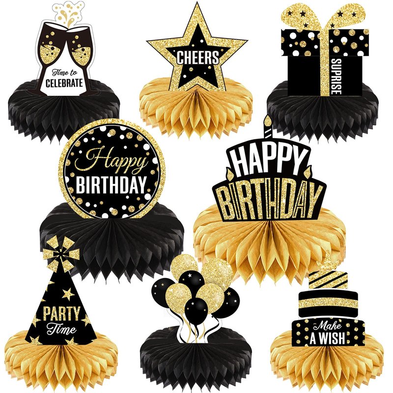 - What you get: you will receive 8 pieces of birthday honeycomb centerpieces including balloons, cakes, hats and so on; The delicate design and variety of pieces make this table decoration kit an impressive addition to any birthday theme party