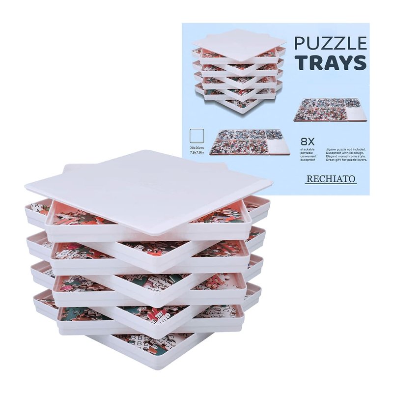 - 【8 Puzzle Organizer Trays】With these stacking puzzle trays, you can make jigsaw puzzles pieces safe, neat and tidy -- all while saving time and table space! Sort the puzzle pieces in different groups according to shape, color or pattern, then store them separately in dedicated puzzle keeper.