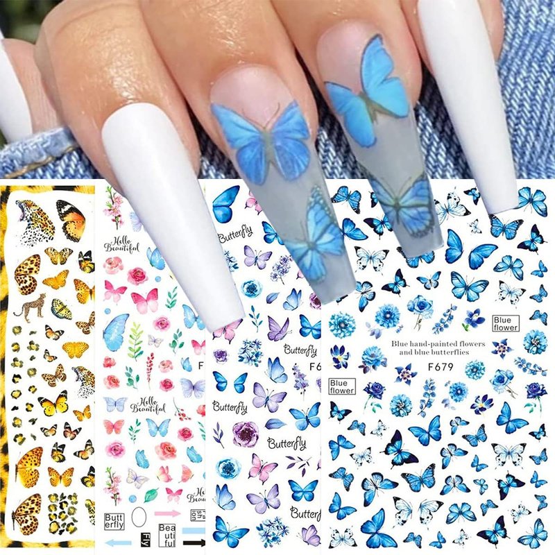 8 Sheets Blue Butterfly Nail Art Stickers Decals JMEOWIO Self Adhesive Pegatinas Uñas Blue Black Gold Butterfly Spring Summer Design Manicure Tips Nail Decoration for Women Girls