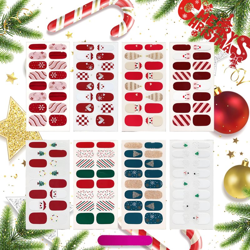 - Christmas Value Pack: You will get 8 sheets Xmas full wraps nail art sticker and 1 piece nail files, rich colors and classic patterns, such as Santa Claus, Christmas tree, snowflake etc. which can offer you multiple choices, satisfy your rich imagination of nail DIY and create your own Christmas.