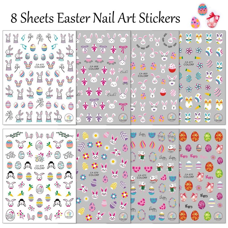 Packing: 8 Sheets/Set Easter Nail Decals
