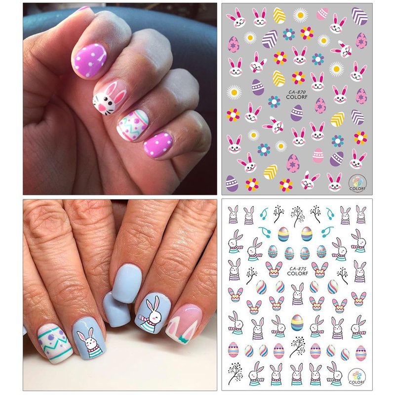 - Safety Material: Easter rabbit nail sticker are made of safe and environmentally friendly materials, safe and friendly, perfect for home use and nail salon.