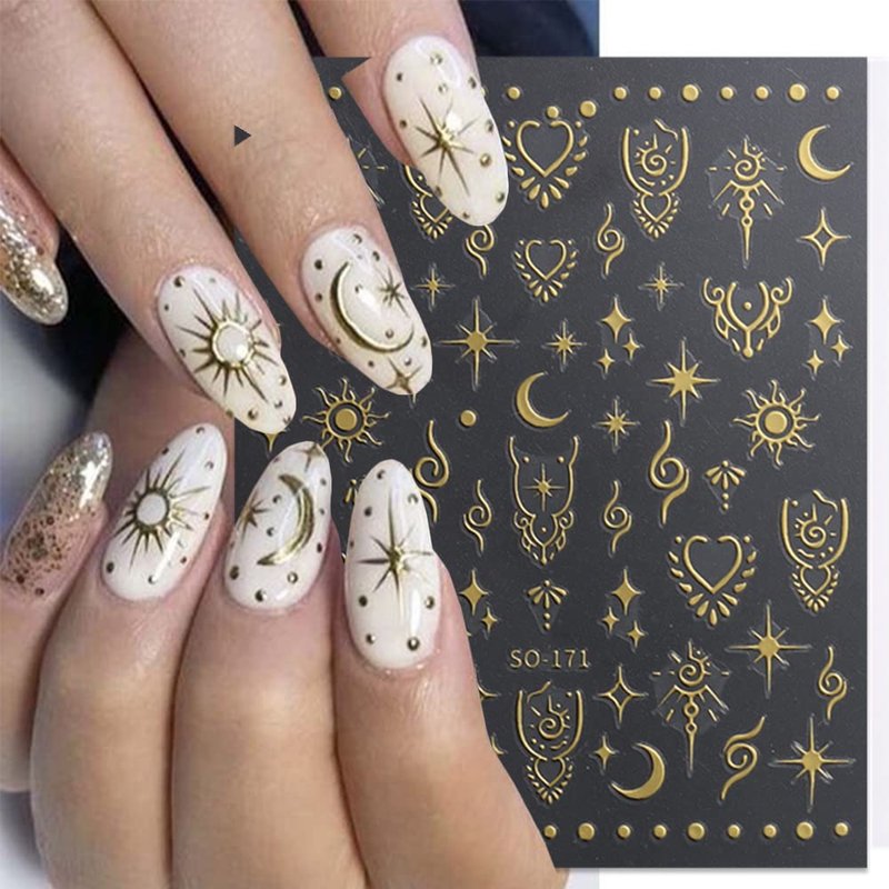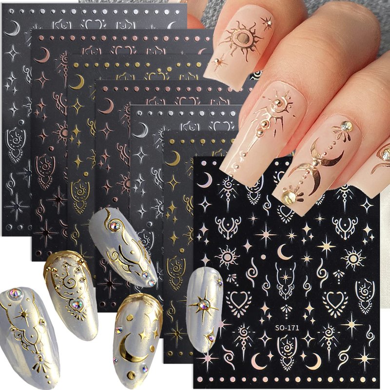 Quantity: 8 Sheets 3D Self-Adhesive Star Moon Sun Nail Art Stickers Decals