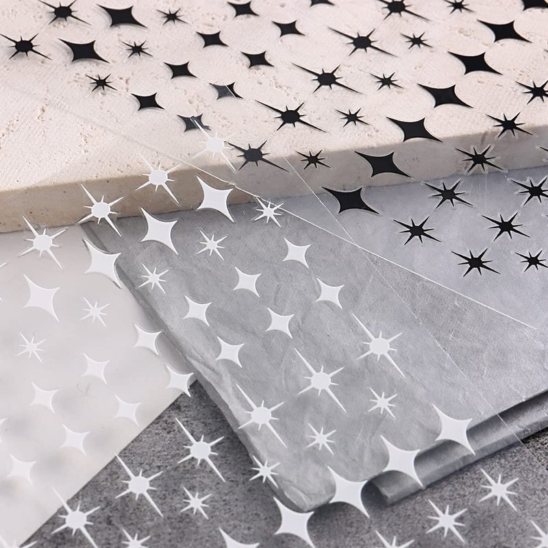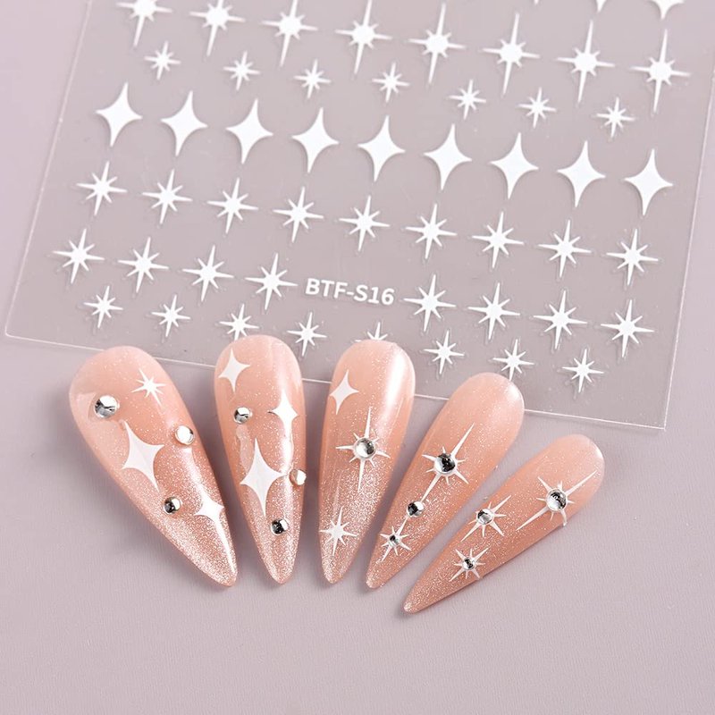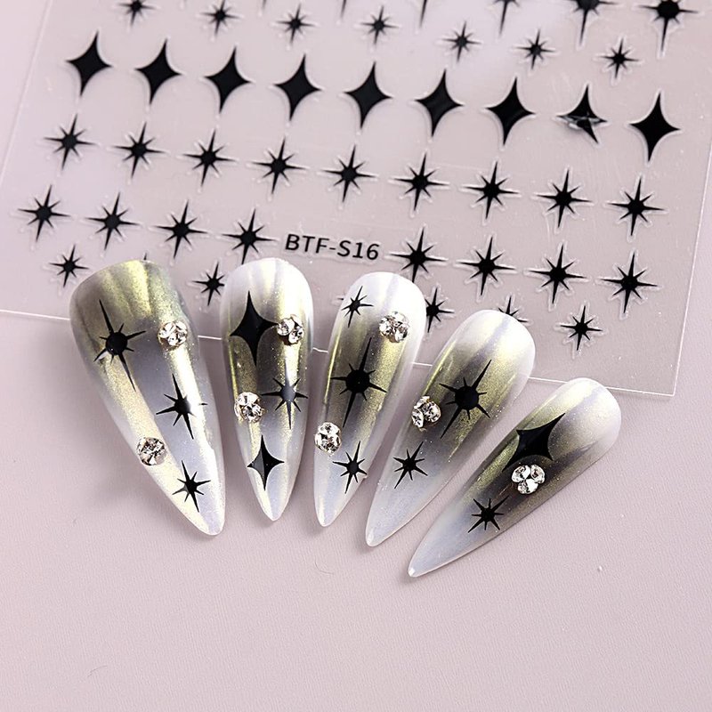 8 Sheets Star Nail Art Stickers Decals Self-Adhesive 3D Nail Art Supplies Gold Silver Black White Nail Art Design Decoration Accessories for Women Girls Manicure DIY