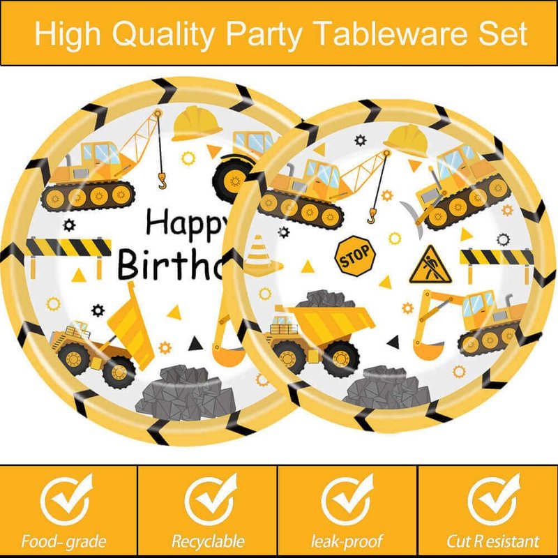 - High-Quality Material: We chose stronger plates and softer napkins than others. Construction birthday party plates and napkins are made of high-quality paper and are safe for both children and adults