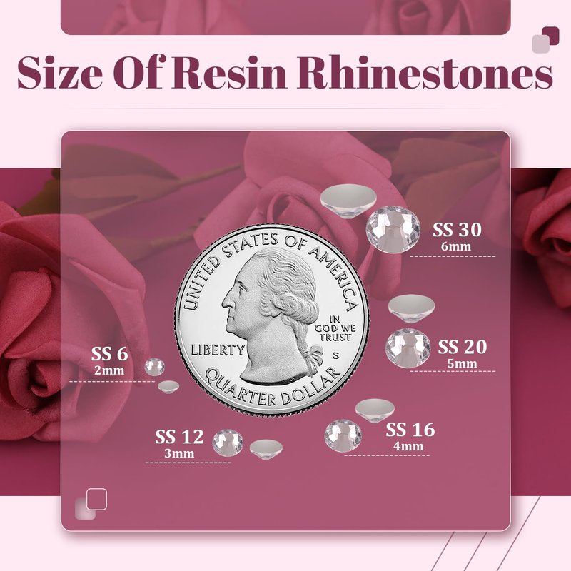 💎PACKAGE CONTENT -- The package contains approx. 8000 pcs of 3mm-SS12 (0.12") bling-out resin rhinestones (Clear). The large amount will support you to fulfill a number of your wonderful DIY decoration ideas. Additionally, 1 tweezers and 1 pickup pen are included for easily picking up of glittering gems.💎TIPS FOR USE -- Non-hot fix flatback gemstones require adhesive for nail art, crafts, or artwork design. We recommend using B7000 rhinestone jewelry glue for DIY projects and UV / quick dry nail glue for nail art. To apply the resin rhinestones, first, clean the surface of your nails or the crafts you wish to embellish. Then, apply the rhinestones with the appropriate glue and wait for them to dry. (Please note that glue is not included.)💎WIDE APPLICATION -- These sparkling iridescent resin rhinestones are perfect for creating dazzling looks. Use them for face makeup, eye makeup, body art, 3D nail art or bedazzling DIY crafts like shoes, tumblers, mugs, bottles, phone cases, popsockets, scrapbooks, photo frames, diamond paintings, greeting cards, bags, glasses, guitars, keychains, hats, masks, hair clips, bracelets, wristbands, clothing, wedding dresses, and more. Apply it to what you want to bling!💎HIGHLIGHTS -- Resin rhinestones are packaged by weight, with each pack containing approximately 8000 pieces. Our store also offers a variety of colors and sizes of resin rhinestones. A sufficient amount of resin gems are suitable for paving large area designs such as diamond paintings or cups. By choosing resin rhinestones with similar or contrasting colors, you can create color-coordinated or highly contrasting works, such as phone cases with gradient effect or colourful festival decorations.