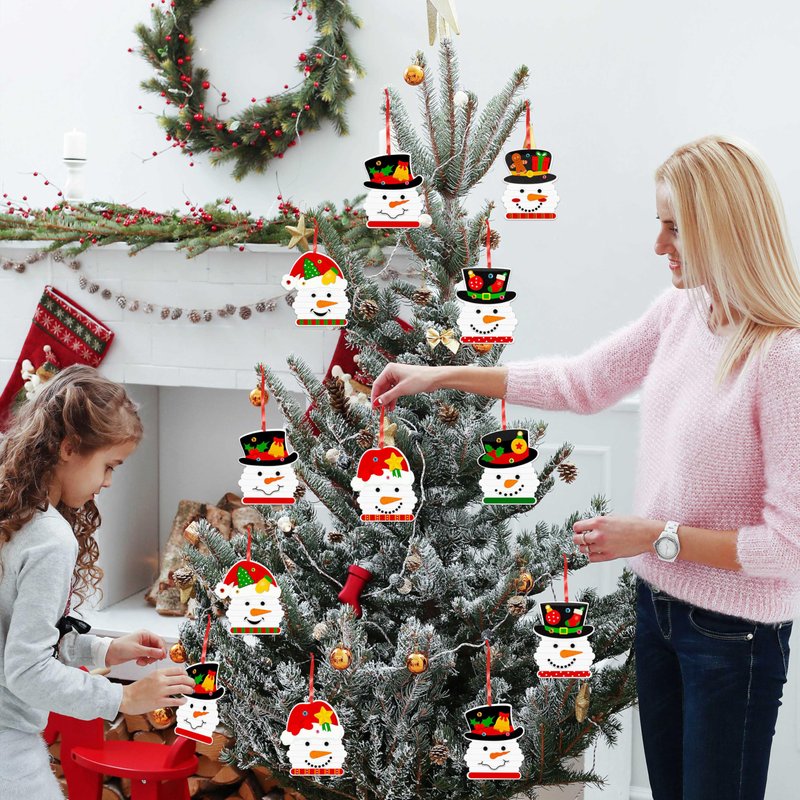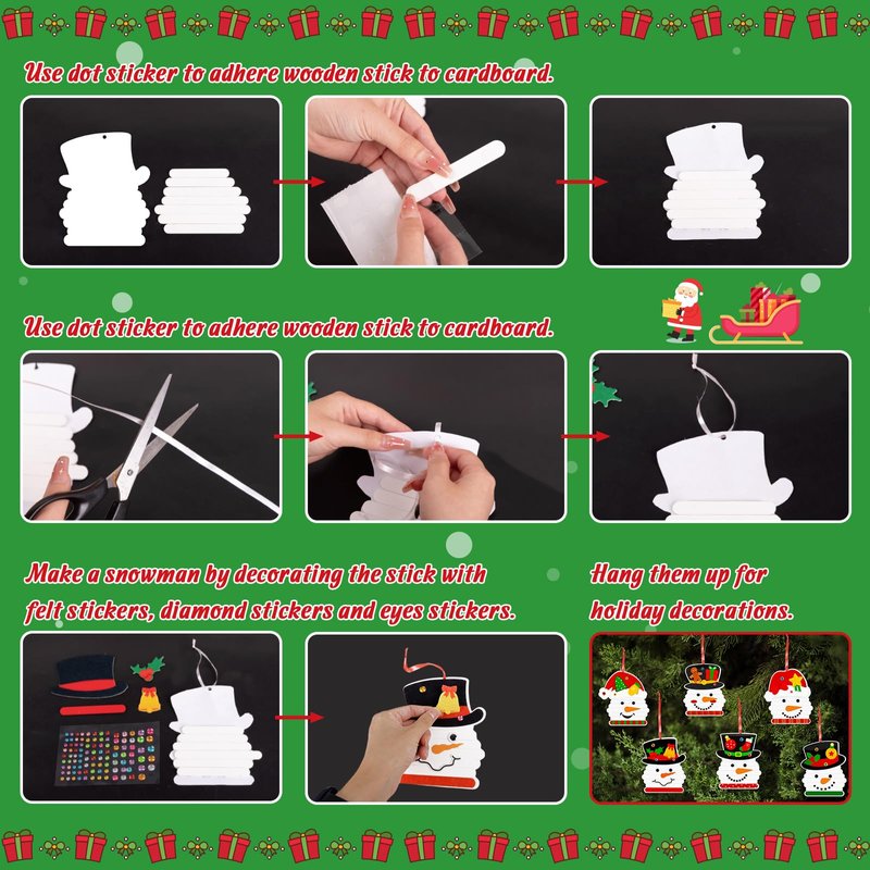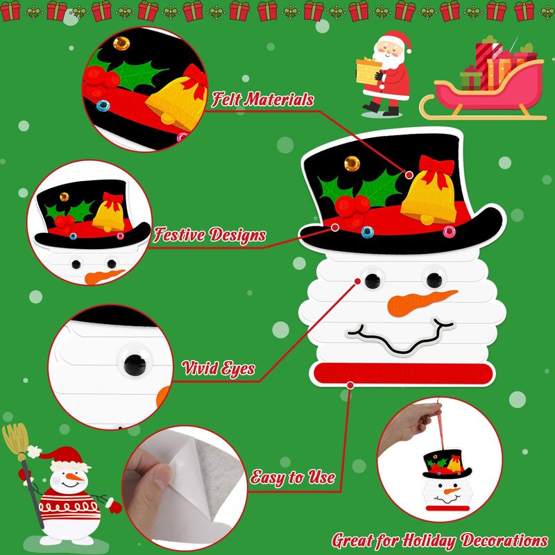 - Material and Size: Sturdy cardstock base, wooden sticks for outlining snowmen, felt stickers for decorating, designed for easy and fun crafting of festive holiday decorations; Finished sizes is 6.16”*4.92”; Includes pre-punched holes and string for easy hanging