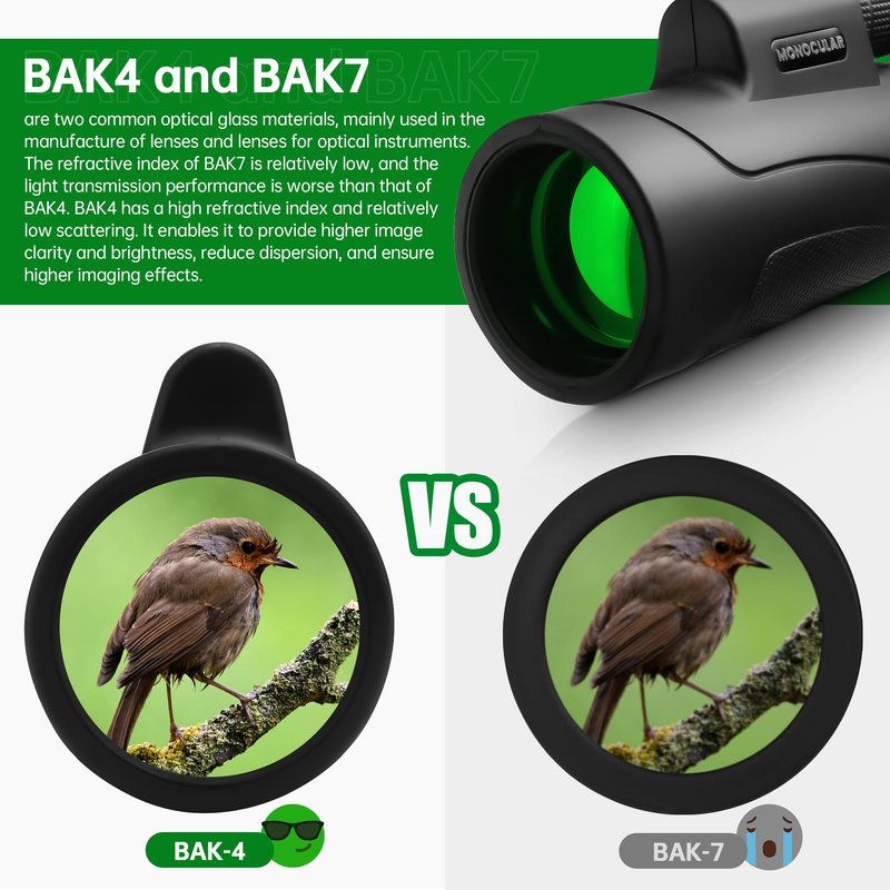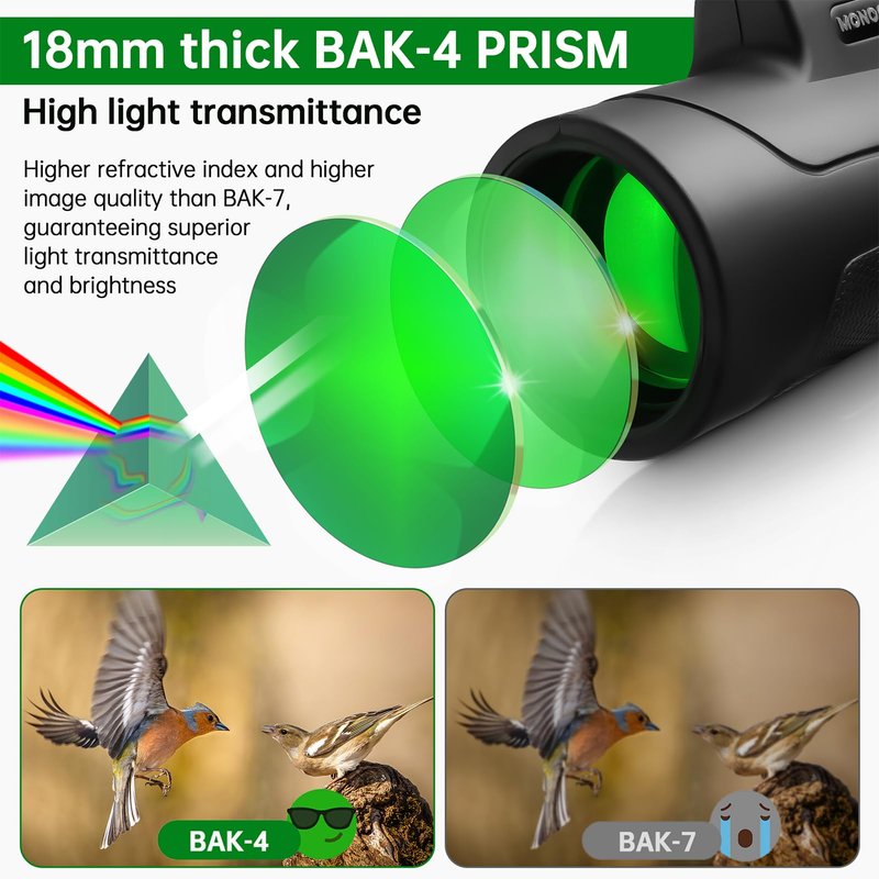 - 【18 mm Extra Large Eyepiece, More Detail, Clearer and Brighter】Equipped with an over sized 18 mm eyepiece, this handheld monocular offers you a comfortable viewing experience. Including the BAK4 prism, all the lenses are fully multi-layer coated to reduce light loss by 99.99%, providing you with a brighter picture.