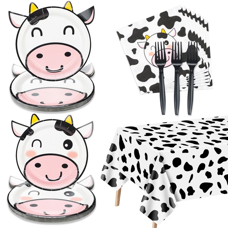 - Unique Cow Shape Design: The cow theme party supplies are designed with 2 cow shape party plates, these cute cow shape plates would be a big hit at your party. Except that, the cow theme tablecloth, and napkin have been printed with adorable cow patterns. These cow theme birthday party supplies will be great additions to your kid's birthday party, or farm animal party, could create a happy festival atmosphere easily, and make an impression on your guests.