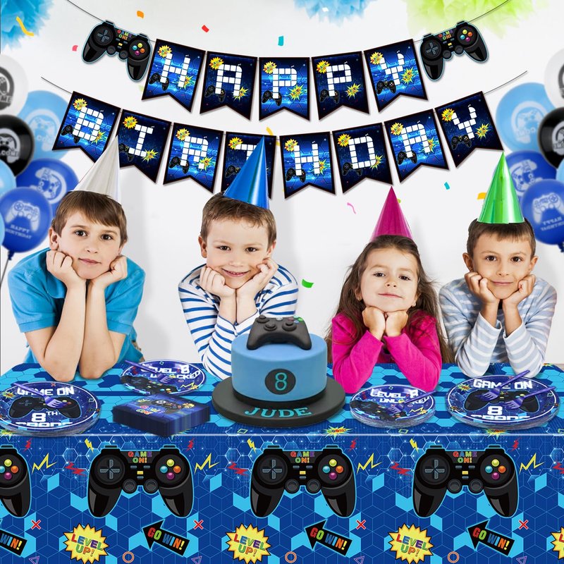 - Great Video Game Party Supplies: This party package is specially designed for 8th video game themed party. Decorating your party with this set, looks cool and eye-catching, easy to create a cheerful and exciting party atmosphere and leave an unforgettable with your friends and family.
