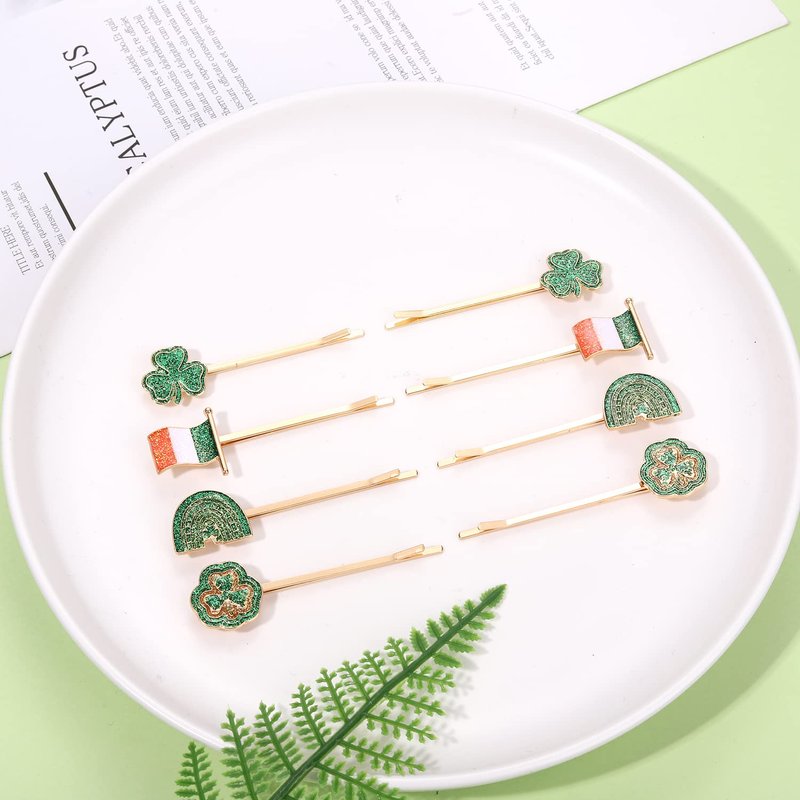 - 【St.Patrick’s Day Hair Clips】: Take your St Patrick's Day look up a notch with this Glitter Shamrock hairpins. Features a gold hair pin decorated with classic St.Patrick's Day elements pattern, like shamrock, hat, lucky leaf, Irish flag, gold pot, rainbow and so on, with sparkly details for an added shimmer. Seemingly crafted by a leprechaun, our chic accessories make it easy to show off your Irish spirit that is sure to turn heads.