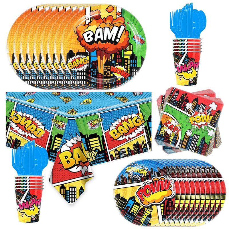 81Pcs Super City Heroes Party Tableware Set Super City Heroes Party Decoration Super City Heroes Birthday Party Supplies