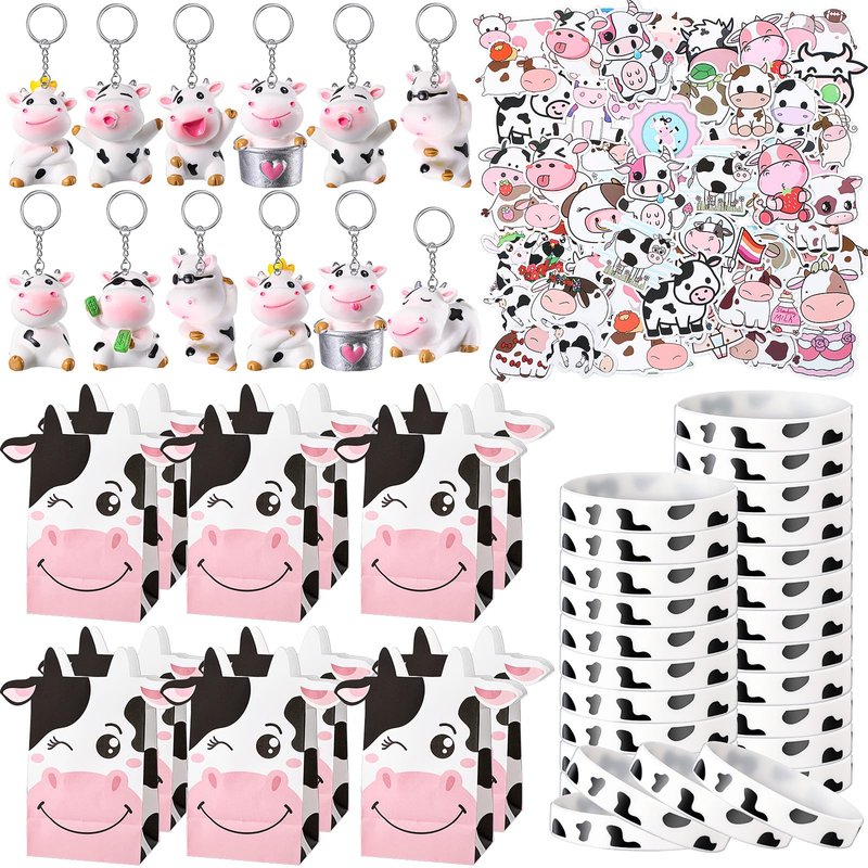 - Adorable Cow Theme Design: these cow print birthday party supplies are inspired by real cows, pastel and fascinating; Each keychain has a cute winking cow; A classic black and white combination, the cow print bracelet complements your various clothing styles