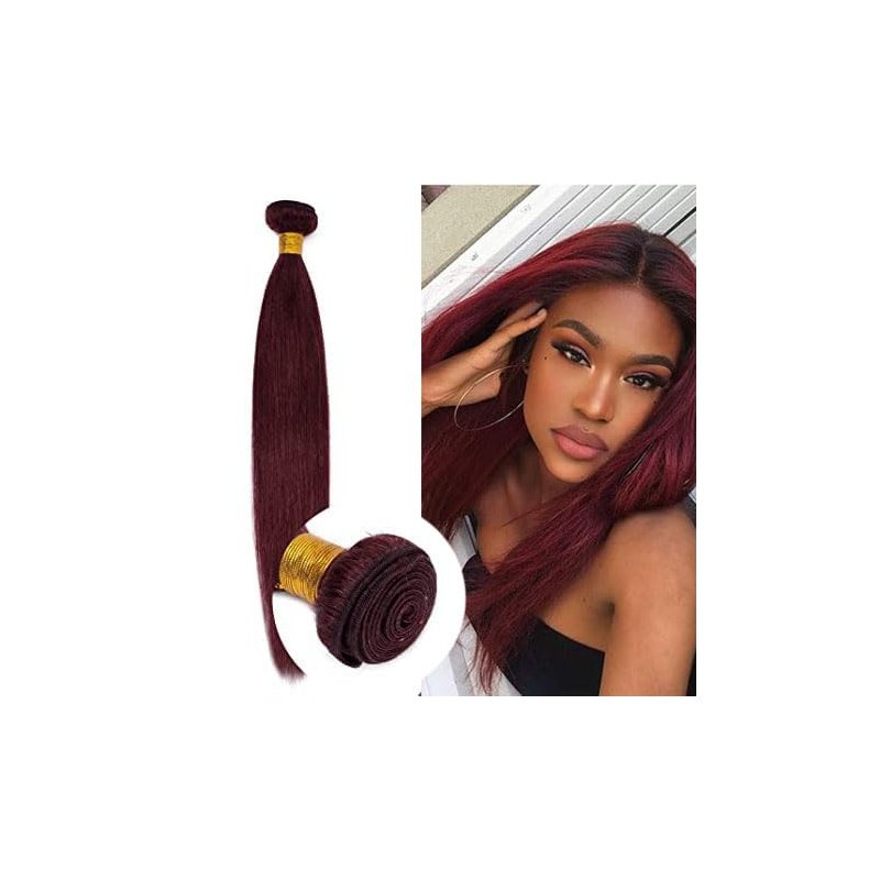 100% Virgin Sew in Human Hair - The bundle human hair weaves with all cuticles aligned in one direction. The bundle is securely made that the hair won't fall off or tangle. Hair texture is healthy and comfortable for wearing. Hair Length&Weight:99J Ombre Straight .95-100 Grams Per Bundle, Real Length, Real Weight,True Measurement. Why the hair get thinner from top to end? In order to make the hair look like real human hair, the top of hair is thicker than the hair tail. Besides, the hair tail is not easy to get tangled in this state. Premium Hair Bundle Sew in Technique -straight single human hair bundle is made with strong machine weft and processed with anti-shedding technique, making hair more stable and durable. Tips for usage - Considering the monitors and light differences, the hair color may slightly differ from the actual hair bundle.