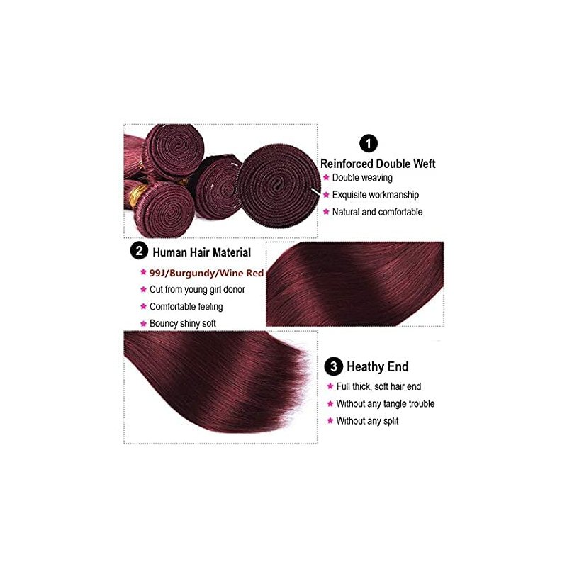 8A Brazilian Virgin Hair 99j Burgundy Straight Hair Weaves Bundle Free Part Red Wine Color 100% Unprocessed Human Hair Weft Weaves (20 INCH)…… B0BWXMLRM9