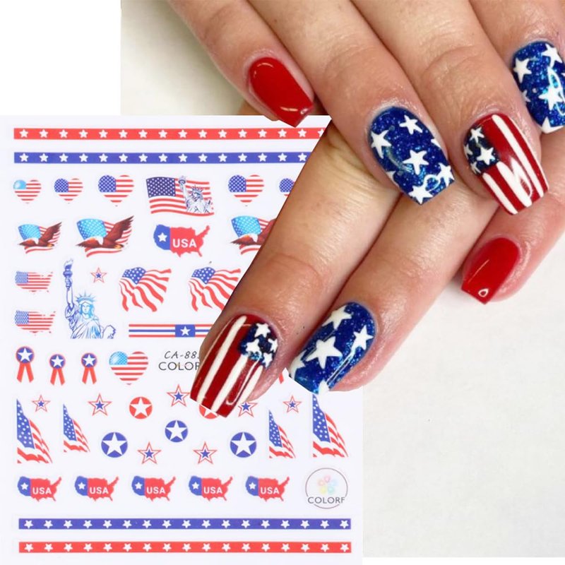 - Easy to Use: This patriotic nail art stickers is self-adhesive. just use tweezers to tear off the independence day nail decals, and then stick the 3d nail stickers on the nail.You can also use nail gel to cover to make the beautiful stickers last longer.