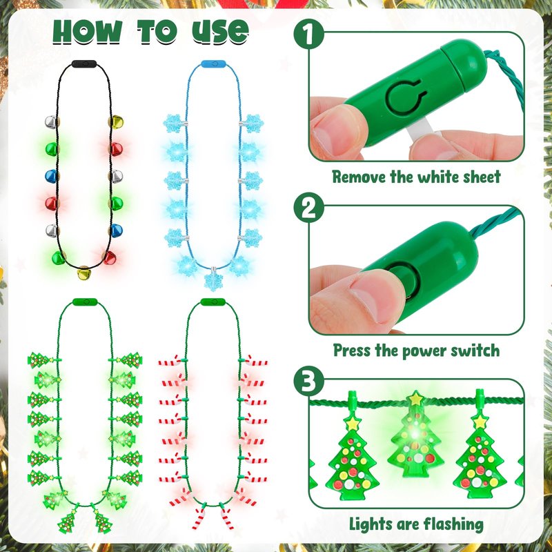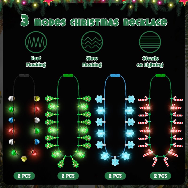 - Package Details - You will receive a total of 8 Christmas light necklaces in 4 styles to evoke the warmth of Christmas and create unforgettable moments for your party.