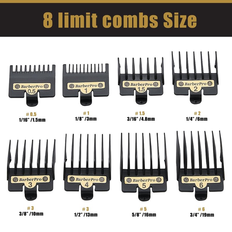 - ▶【8 Length Optional】: let you trim any length of hair easily on your face,These clipper guide combs include 1/16 , 1/8 , 3/16 , 1/4 , 3/8, 1/2, 5/8, 3/4inch (#0.5, #1 , #1.5, #2,#3,#4,#5,#6),You will get 8 clipper attachments, each comes with a different length