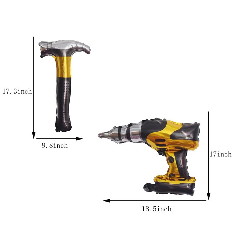 - Package Content: 4pcshammer foil balloon, 4pcs drill foil balloon.