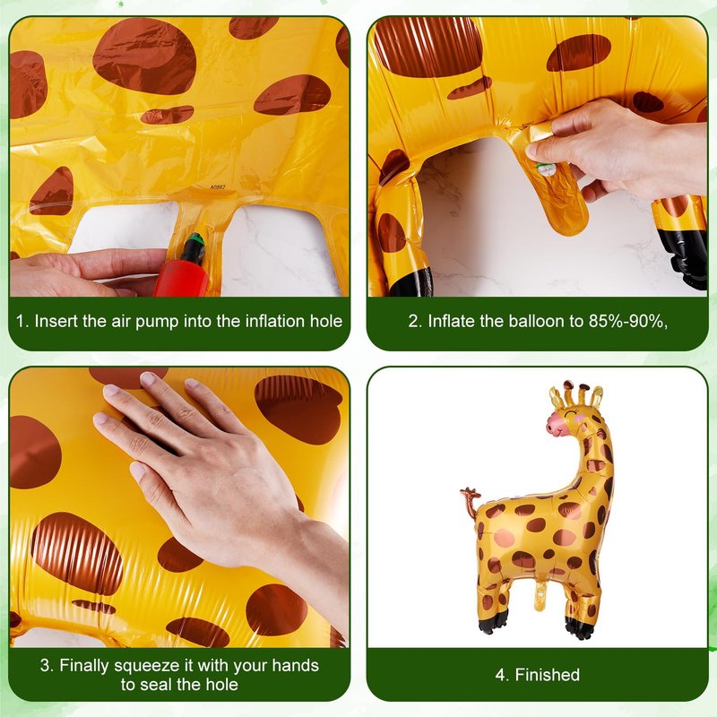 - How to Use: The animal balloons have self-sealing hole to inflate and deflate. Insert the air pump into the inflation hole, inflate the balloon to 85%-90%, and finally squeeze it with your hands to seal the hole. Please be careful to inflate slowly to 85%-90% gas to avoid bursting!