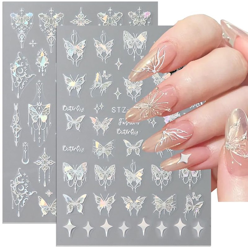 - √【Laser Aurora Butterfly Stickers for Nails】In addition, there are 3 laser aurora white butterfly stickers and 1 laser aurora pink butterfly sticker. These aurora colored stickers look shiny, elegant and fairy-like, will make your nails more dazzling and charming, and can be used for daily nail art, parties nail decor and holiday nail design.